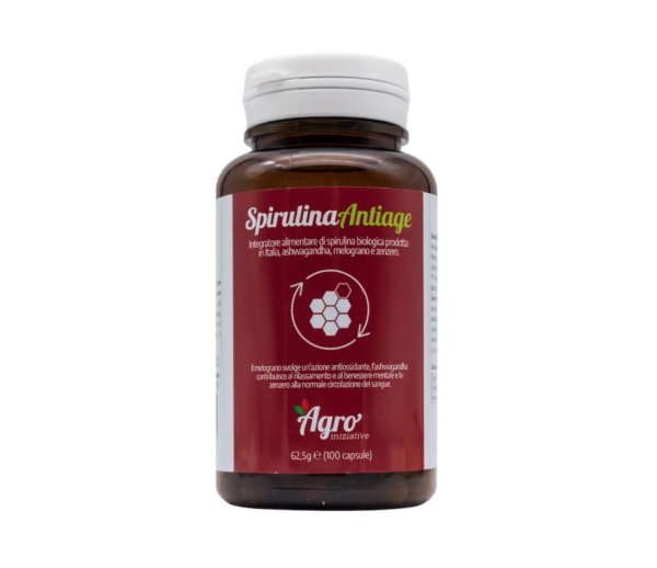 Spirulina Antiage è un integratore con Spirulina italiana biologica 100%, utile a contrastare lo stress ossidativo cellulare e gli stadi infiammatori cronici di basso grado, la formazione di prodotti della glicazione avanzata e la perossidazione lipidica.